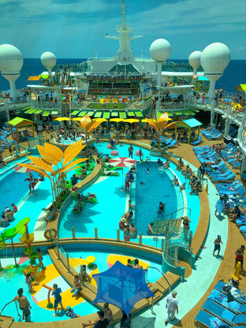 Deck 15 - The “Lido Deck” (LEE-doh ; /ˈlēdō/) is the primary fun-in-the-sun deck with pools, bars, a child-free zone at the bow known as the “Solarium,” and the “Windjammer” at the stern (a large buffet hall open for breakfast, lunch, and dinner - “Washy, washy; happy, happy!”)